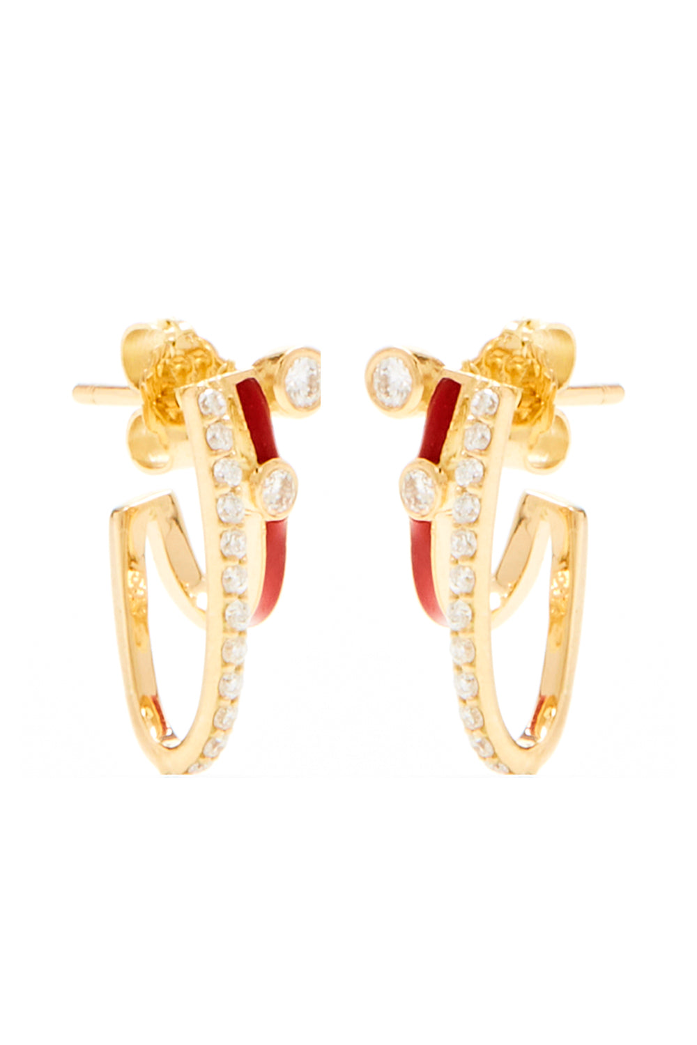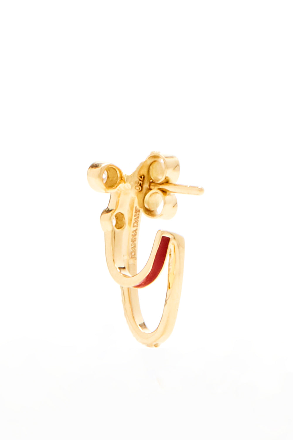 Crafted in 18k gold, coated in enamel and embellished with diamonds. They are designed to give the illusion you have multiple piercings. Wear yours solo or stacked along a pair of huggies from the collection.
