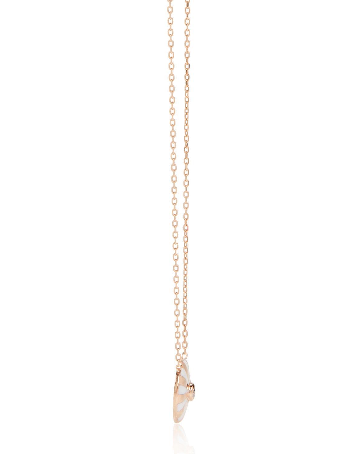 The signature "Mila Heart" strung along a delicate 18k gold chain, embellished with a diamond stud. Designed to be worn stacked with other pieces from the collection.