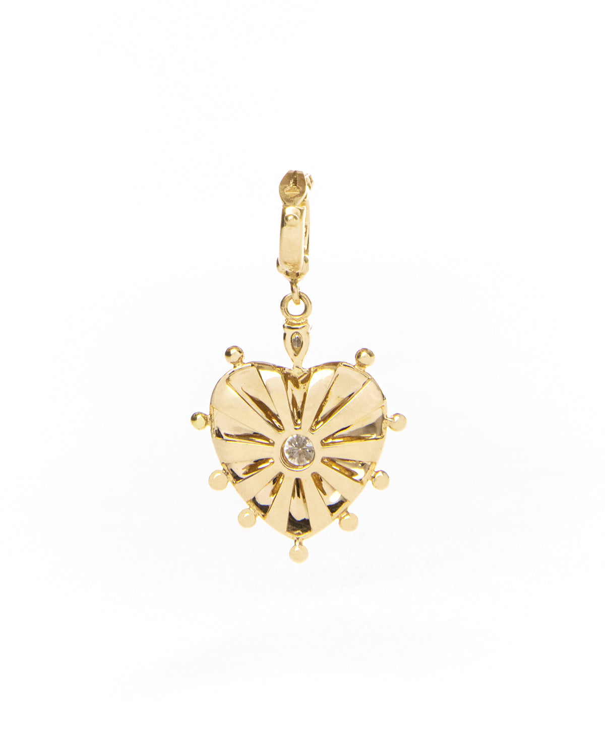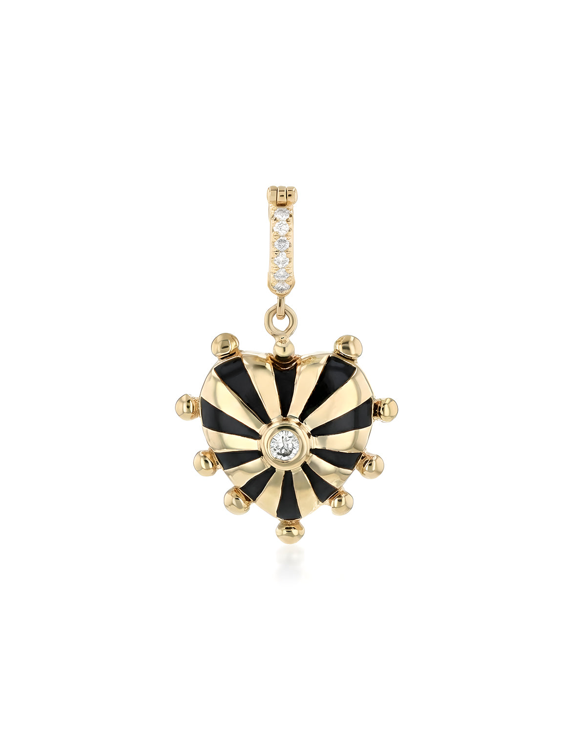 Small Mila Heart Pendant, Black Enamel, White Diamond and Gold beads